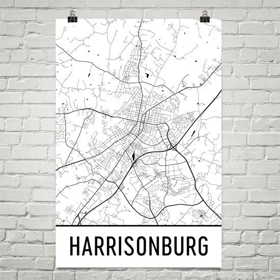 Harrisonburg VA Street Map Poster Wall Print by Modern Map Art